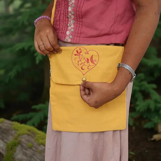 Upcycled Valentine Everyday Rectangular Sling Bag that comes with two zipper closures and a patch-pocket for your essentials